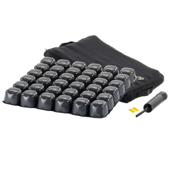 Dit zitkussen maakt gebruik van luchtkamers die afzonderlijk van elkaar zijn geplaatst om de druk gelijkmatig te verdelen over het zitoppervlak. Pas het kussen aan naar uw persoonlijke behoeften, rekening houdend met factoren zoals gewicht en mobiliteit, met de instelbare luchtdruk. Hierdoor wordt de bloedcirculatie bevorderd en wordt het risico op drukzweren verminderd. Dit kussen zorgt voor een optimale ondersteuning op maat.