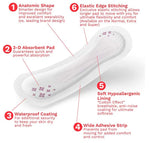 ITALIAANS ONTWERP: Ideaal voor lichte incontinentie en problemen met de controle over de blaas. Deze pads bieden totale bescherming en onzichtbaarheid voor mensen met een actieve levensstijl. Ontworpen en vervaardigd in Italië, waar kwaliteit het belangrijkst is.