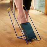 - Pak de verlengde handvatten aan beide kanten vast. En steek jouw voet in de Ezy-On steunkous hulp. Trek vervolgens de steunkous aan door de Ezy-On rustig omhoog te trekken. Zorg ervoor dat de kous goed over het been verdeeld is.