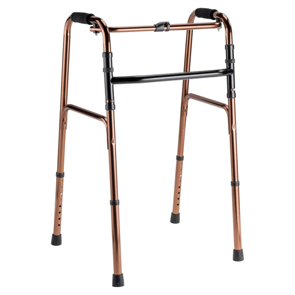Dit lichtgewicht looprek is gemaakt van aluminium en weegt slechts 2,2 kg. Het looprek is gemakkelijk in te klappen waardoor het looprek erg compact opgeborgen kan worden. Het looprek is in hoogte verstelbaar in 8 verschillende standen. De laagste stand is 75 cm en de hoogste stand 93 cm. De bronze kleur geeft dit looprek een erg luxe uitstraling.