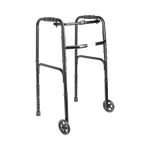 Lichtgewicht looprek met wieltjes, inklapbaar Dit lichtgewicht looprek met wieltjes is gemaakt van aluminium en weegt slechts 3 kg. Het looprek is gemakkelijk in te klappen waardoor het looprek erg compact opgeborgen kan worden....