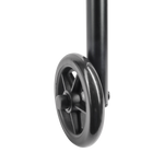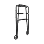 Aan de voorzijde van dit looprek zitten 2 wieltjes. Tijdens het lopen moet de achterkant opgetild worden en de voorkant kan door de wieltjes op de grond blijven staan.