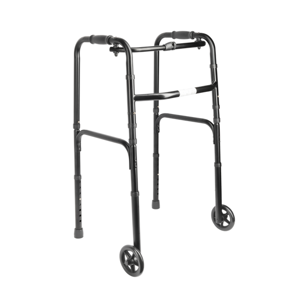 Dit lichtgewicht looprek met wieltjes is gemaakt van aluminium en weegt slechts 3 kg. Het looprek is gemakkelijk in te klappen waardoor het looprek erg compact opgeborgen kan worden. Het looprek is in hoogte verstelbaar in 7 verschillende standen. De hoogte van de handvatten in de laagste stand is 79 cm en de hoogste stand 95 cm.