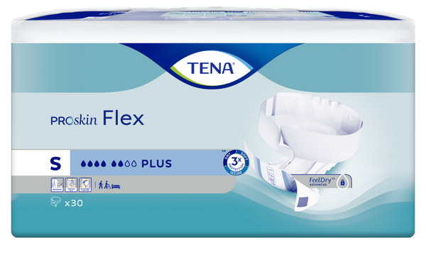 is een flexibel incontinentieverband met heupband, met een speciaal ontwerp waardoor het product eenvoudiger en ergonomischer kan worden verwisseld, geschikt voor mobiele, half-mobiele en minder mobiele mensen. Voor uitstekende bescherming leidt TENA ProSkin Flex met FeelDry Advanced™ het vocht snel weg van het oppervlak, zodat de huid droog blijft. De superabsorberende, snelwerkende kern sluit zelfs grotere hoeveelheden urine snel op voor een droog gevoel, en de volledig ademende achterzijde van ConfioAir™ zorgt dat de huid kan ademen. Al deze kenmerken zorgen dat de natuurlijke gezondheid van de huid wordt behouden. De verstelbare heupband van ComfiStretch™ zorgt voor een nauwsluitende pasvorm om het comfort te verhogen en betere bescherming te bieden tegen doorlekken. Voor gebruiksgemak is de heupband voorzien van klittenband die aan de voorzijde kan worden bevestigd en volledig verstelbaar is voor verschillende lichaamstypes.