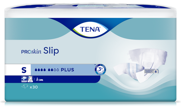 is een open ééndelig incontinentieproduct met verstelbare strips voor een perfecte pasvorm, comfort en bescherming tegen doorlekken. In tegenstelling tot veel van het standaard verband voor volwassenen, heeft TENA ProSkin Slip een zacht textielachtig materiaal, een pasvorm die aansluit op het lichaam en een hoge mate van bescherming tegen doorlekken. Het is ideaal voor mensen die minder mobiel zijn of wanneer het product in bed wordt verwisseld. Dankzij de werking van FeelDry Advanced™ wordt het vocht snel weggeleid van het oppervlak om de huid droog te houden. Vervolgens worden zelfs grotere hoeveelheden urine snel opgesloten door de absorberende kern, voor een droog gevoel, en de volledig ademende achterzijde van ConfioAir™ zorgt dat de huid kan ademen. Al deze kenmerken zorgen dat de natuurlijke gezondheid van de huid wordt behouden. Dankzij het open ontwerp met sterk klevende bevestigingsstrips kan het product zowel staand als liggend worden verwisseld en kan het eenvoudig opnieuw vastgemaakt of versteld worden voor een perfecte, betrouwbare pasvorm. Voor een fris gevoel bevat het product een Odour Neutralizer en een urine-indicator die aangeeft wanneer het tijd is om het product te vervangen.