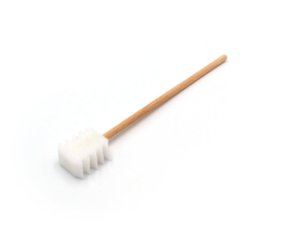 • Mondzorgstaafjes, witte PU schuim, houten steel van 15cm