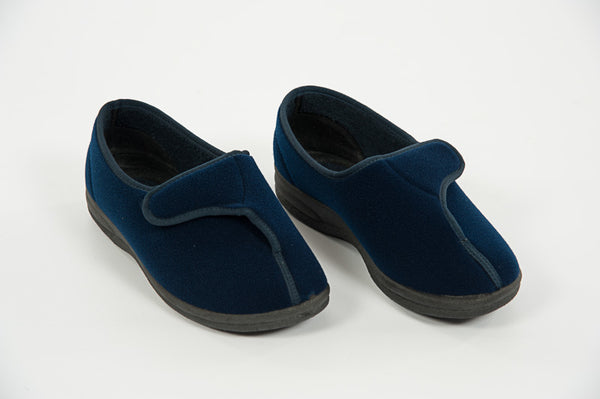 - Een pantoffel die ver open kan met een regelbare sluiting